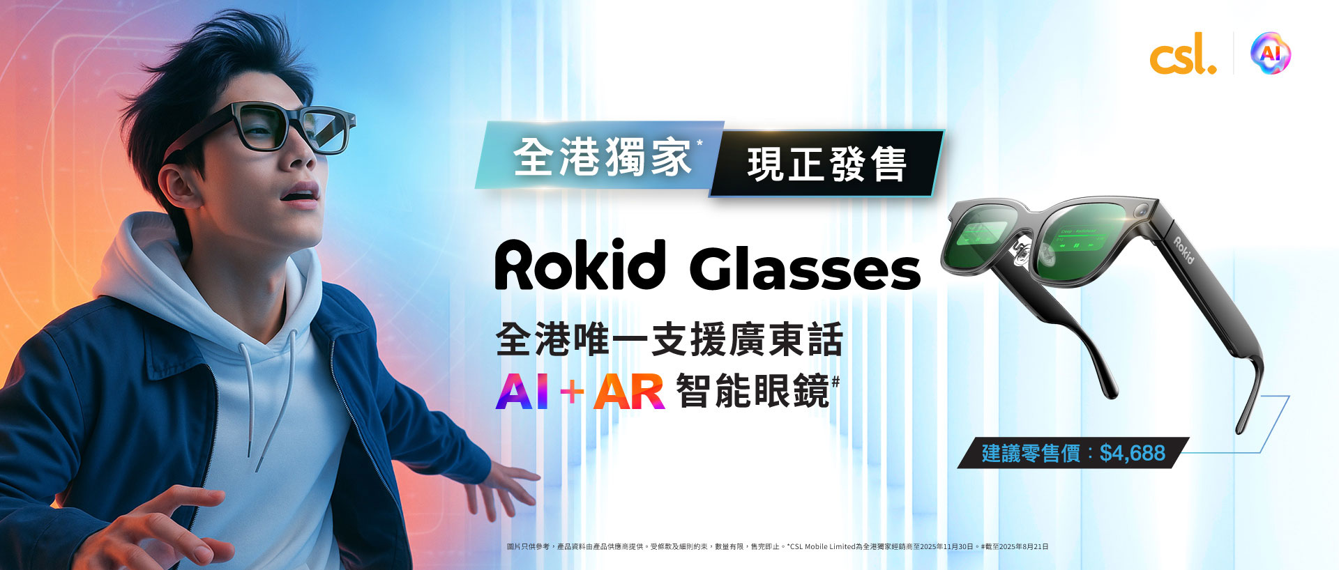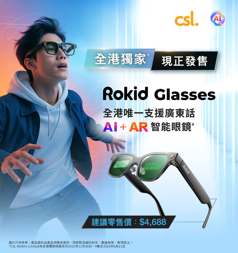 【#csl極速號外 全線 csl 門市 率先試玩全港獨家* Rokid Glasses AI 智能眼鏡 內置強大 AI 助手為你嘅健康護航!】