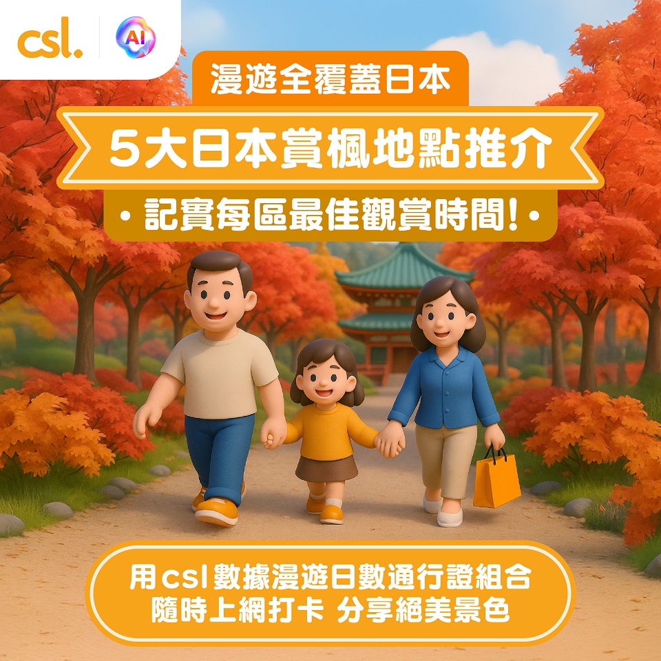 【#csl5G數據漫遊 5 大日本賞楓地點推介】