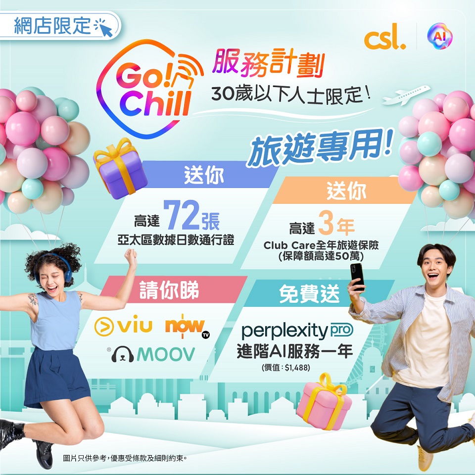 【#csl30歲以下人士召集 ✈️旅遊專用 Go!Chill 服務計劃送旅遊保險、Perplexity Pro 、仲有真人協助預訂海外餐廳服務‼️】