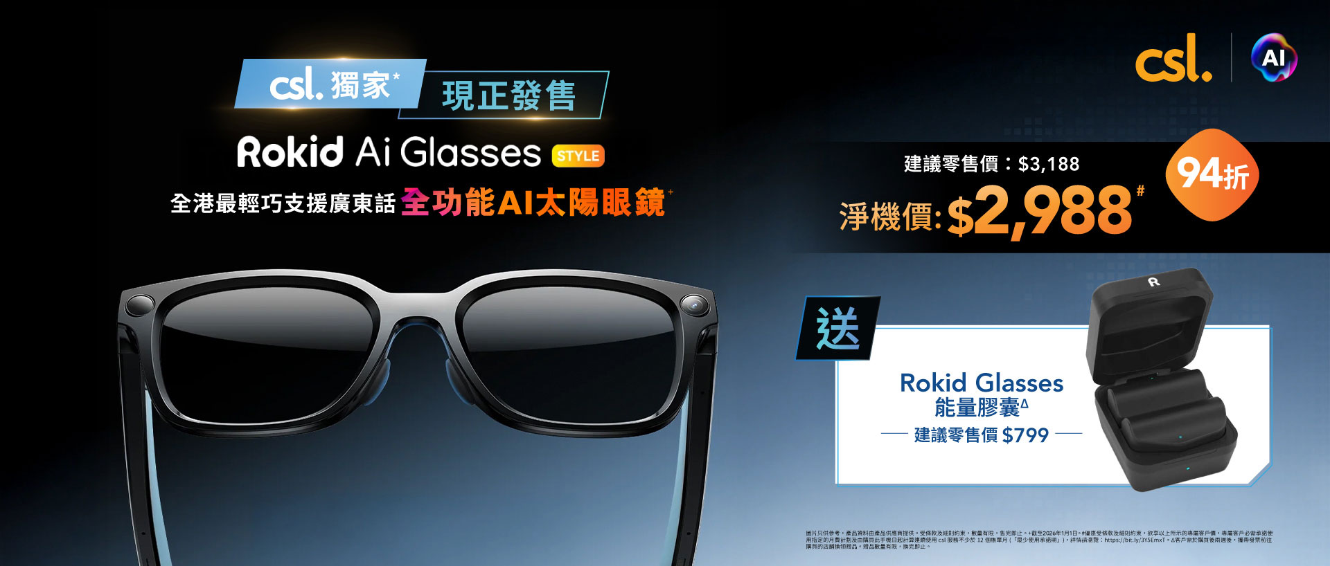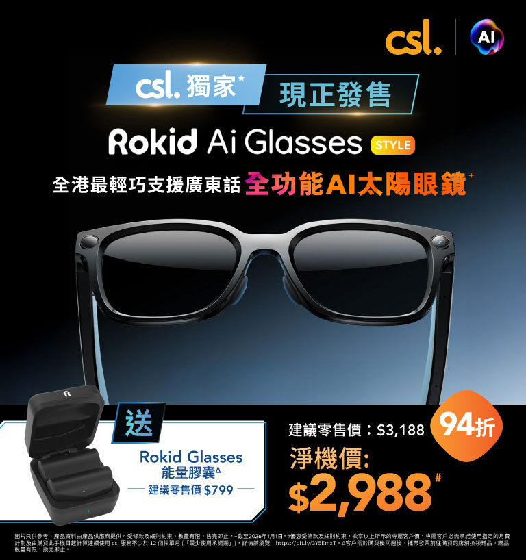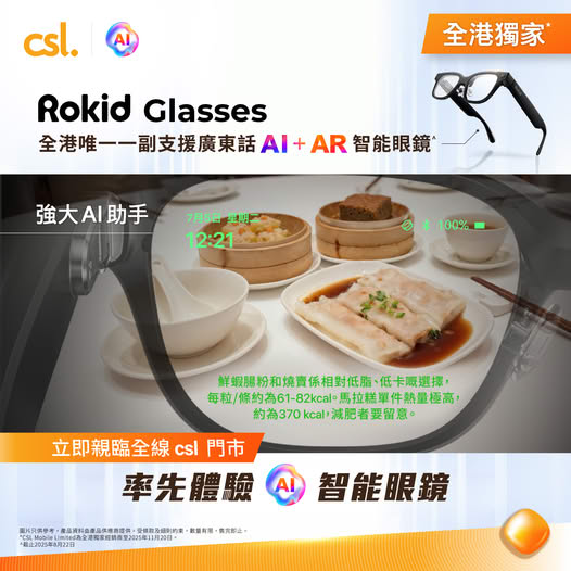【#csl極速號外 全線 csl 門市 率先試玩全港獨家* Rokid Glasses AI 智能眼鏡 內置強大 AI 助手為你嘅健康護航!】